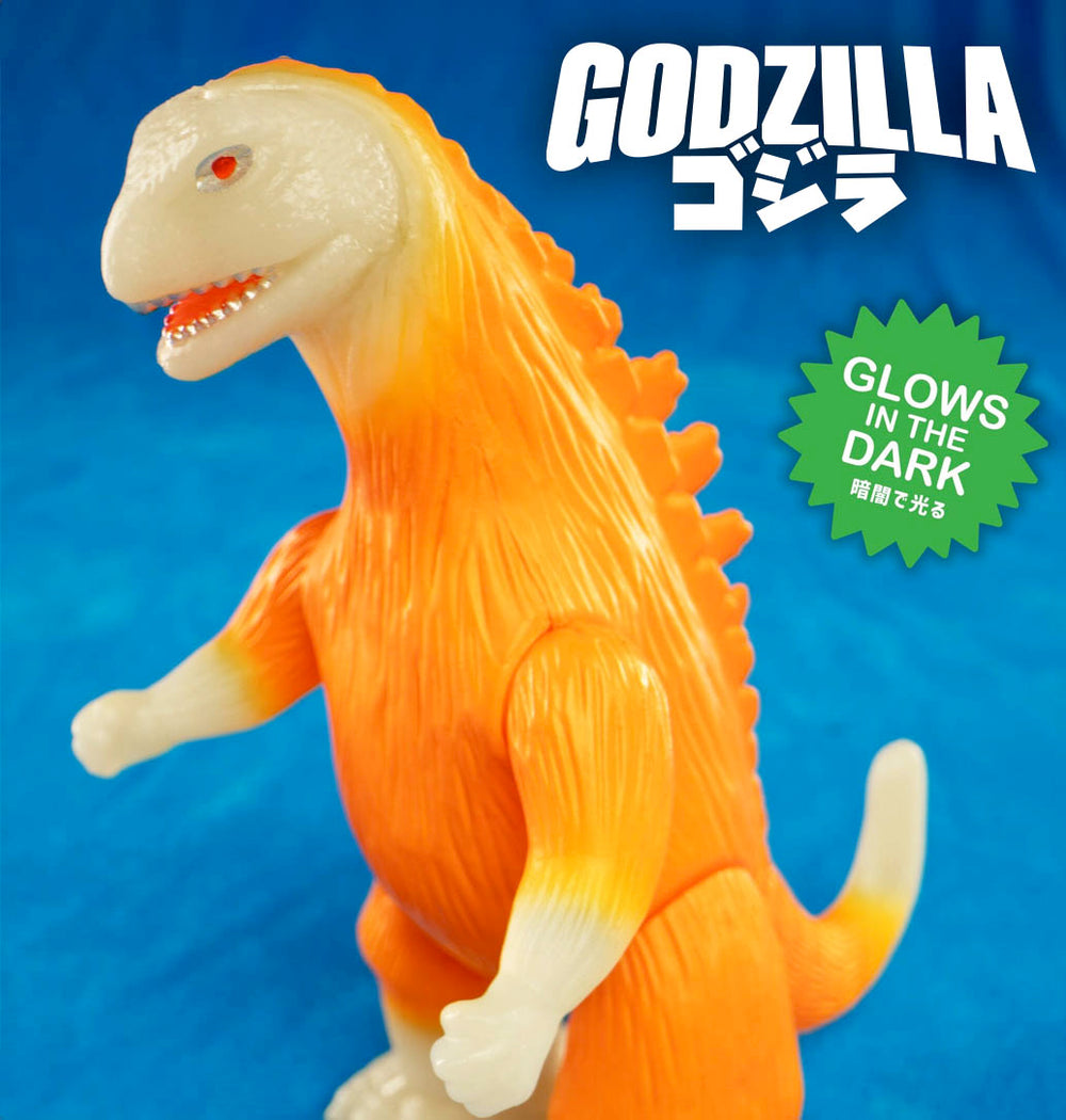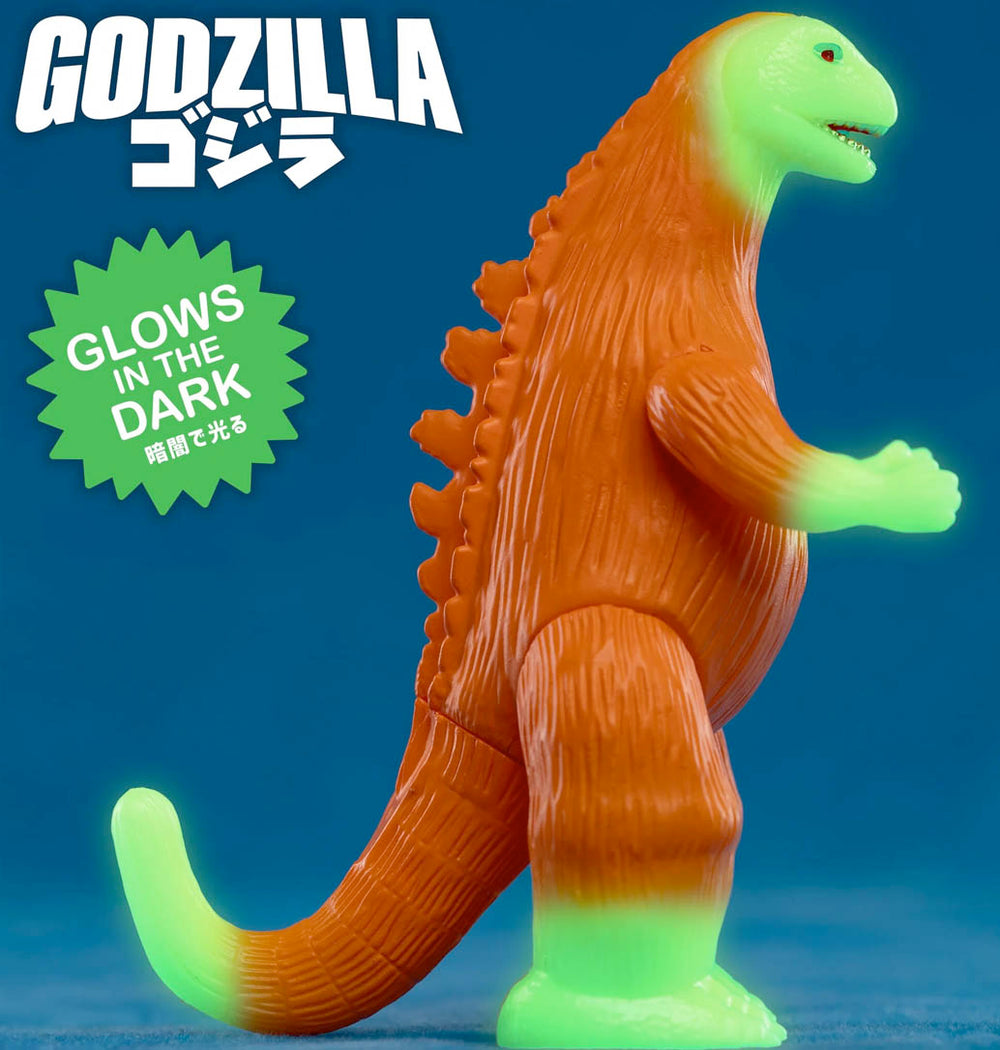 Marusan’s articulated vinyl toys must have been a dream come true for kids in the 1960s- finally, they had a Godzilla toy that could stand up to rough-and-tumble Kaiju play! The latest 3.75” scale, articulated Toho ReAction Figure of Marusan Godzilla features an upturned “J-tail” reminiscent of the very early versions of the original toy, and comes in an orange-and-glow colorway inspired by the limited edition Marusan x Super7 collaboration Marusan Godzilla figure from back in 2006. Packed on a die cut cardback, this figure also has the Marusan logo stamped on its foot, just like the original toy! It would be a monstrous mistake not to add this Orange J-Tail Marusan Godzilla ReAction Figure variant to your collection!