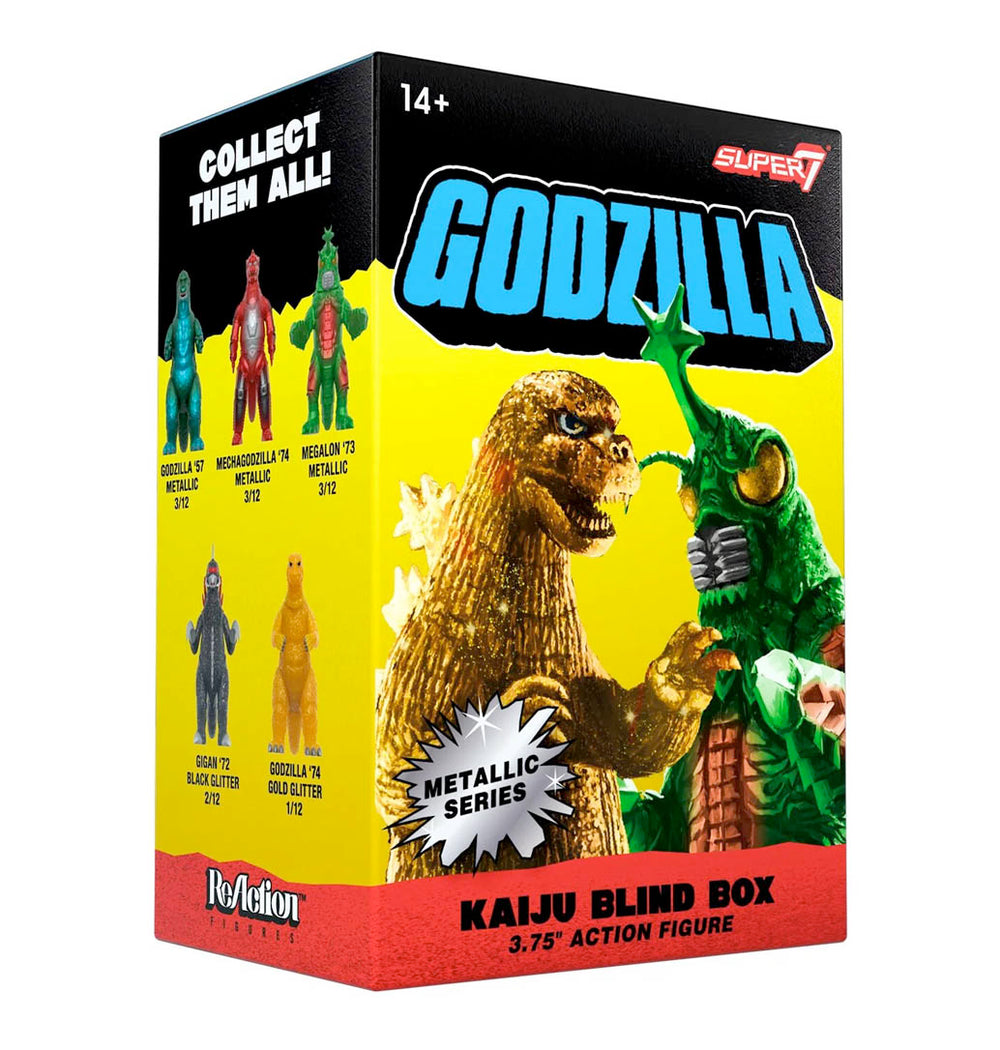 Relive all the classic kaiju clashes you and your friends created back in the day, with the new Metallic Toho Blind Box ReAction Figures, inspired by the vintage Godzilla films! These articulated, 3.75” scale Toho Blind Box ReAction Figures feature one of five unique kaiju designs- metallic Mechagodzilla ‘74, black glitter Gigan ‘72, metallic Megalon ‘73, gold glitter Godzilla ‘74, and metallic Godzilla ‘57- secreted in blind box packaging ready for you to discover which variant hides inside! Your kaiju collection will shine brighter with each of these Metallic Toho Blind Box ReAction Figures you unearth!