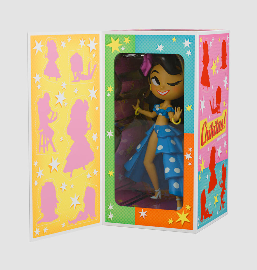 Rumberita is a sizzling, one-of-a-kind creation from the wickedly talented, award-winning Tijuana artist Sandra Equihua (El Tigre, The Book of Life, Maya and the Three). She’s a fiery homage to the iconic queens of the cabaret—those legendary dancers and divine divas who lit up the screen with Afro-Caribbean rhythms during the sultry Golden Age of Mexican cinema in the 1940s and 1950s. With every curve and color, Rumberita shimmies with old-school glamour, tropical heat, and unapologetic attitude!